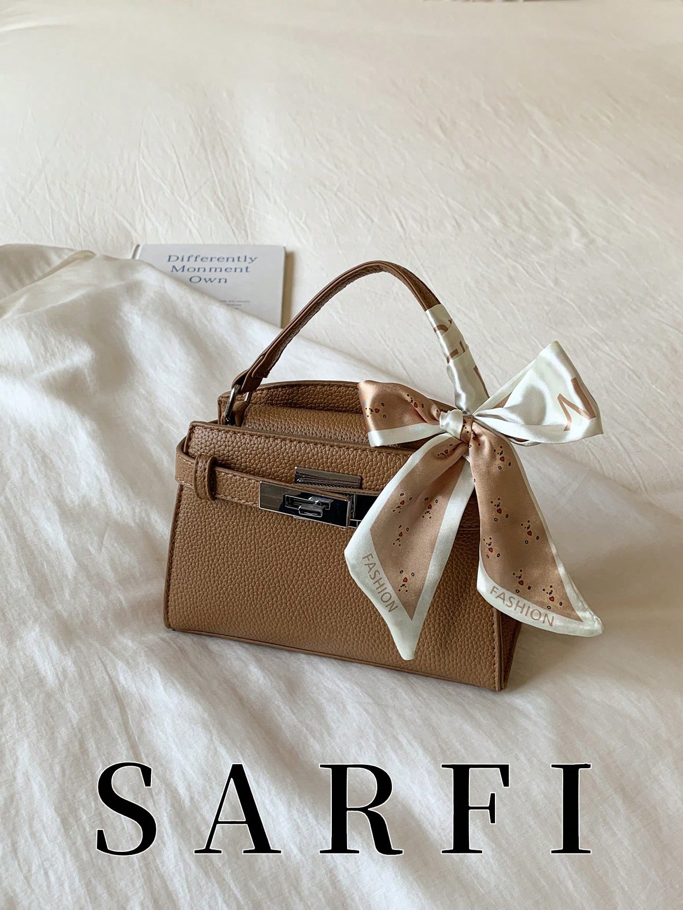 حقيبة يد مربعة للنساء، موضة أنيقة ومهذبة مع تصميم إبزيم متناسق مع الوشاح، حقيبة كتف من البولي يوريثا