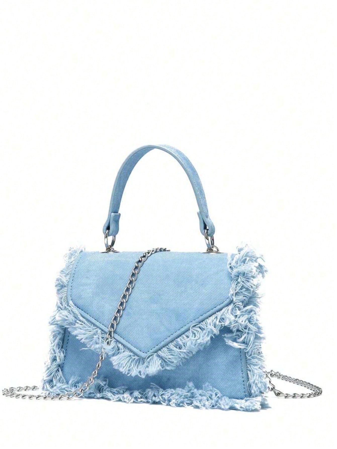 حقيبة يد بتصميم بسيط بلون موحد وعقدة تزينها وحزام سلسلة سميك