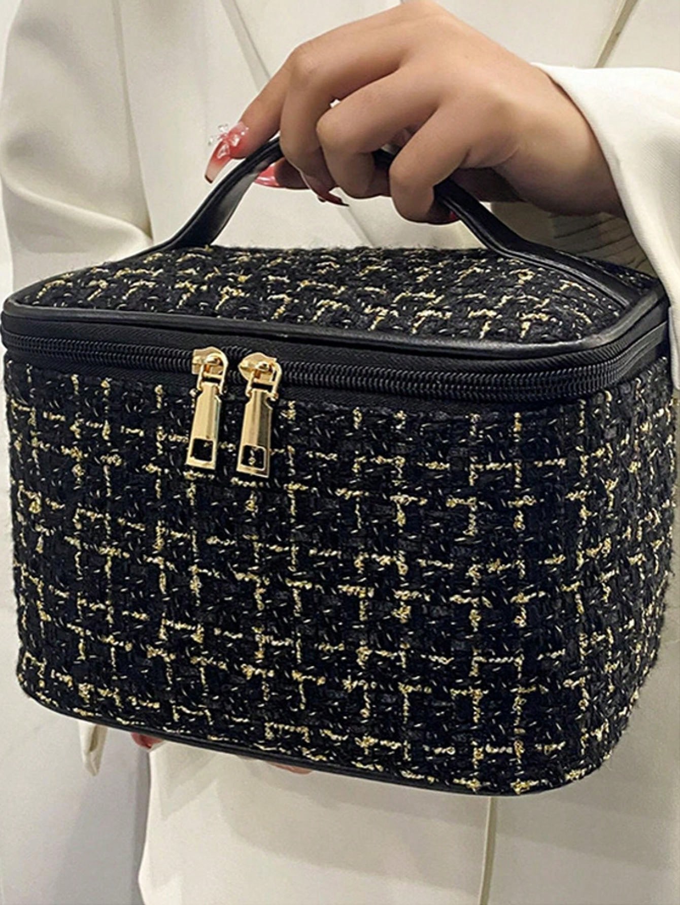 1 حقيبة مستحضرات تجميل مصنوعة من القطيفة، حقيبة تخزين، حقيبة سفر، حافظة أقلام، حقيبة أدوات التجميل،