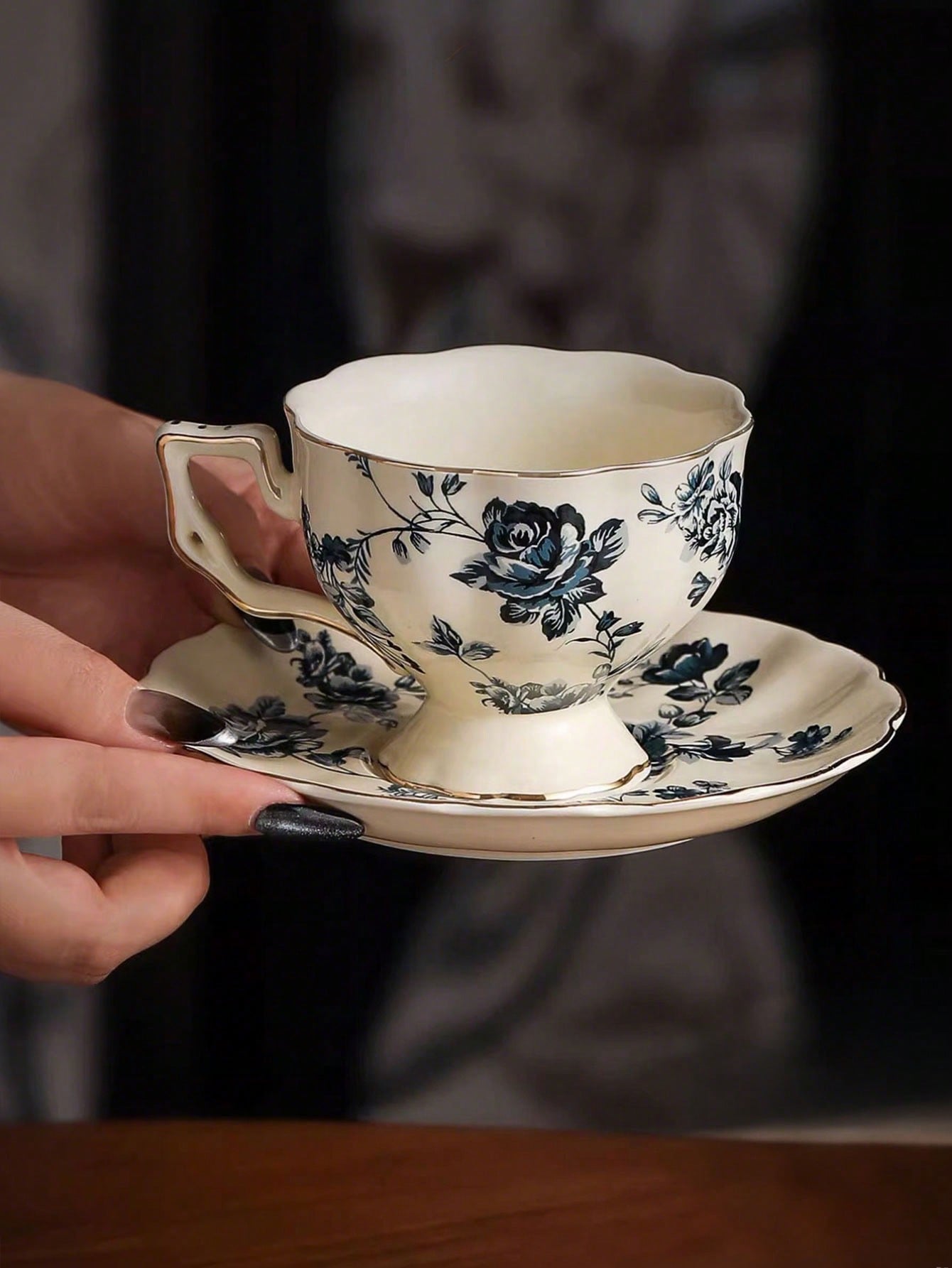طقم فنجان وصحن سيراميك وردة حمراء، فنجان قهوة أنيق بطراز فرنسي قديم، مناسب للمطعم وغرفة المعيشة والم