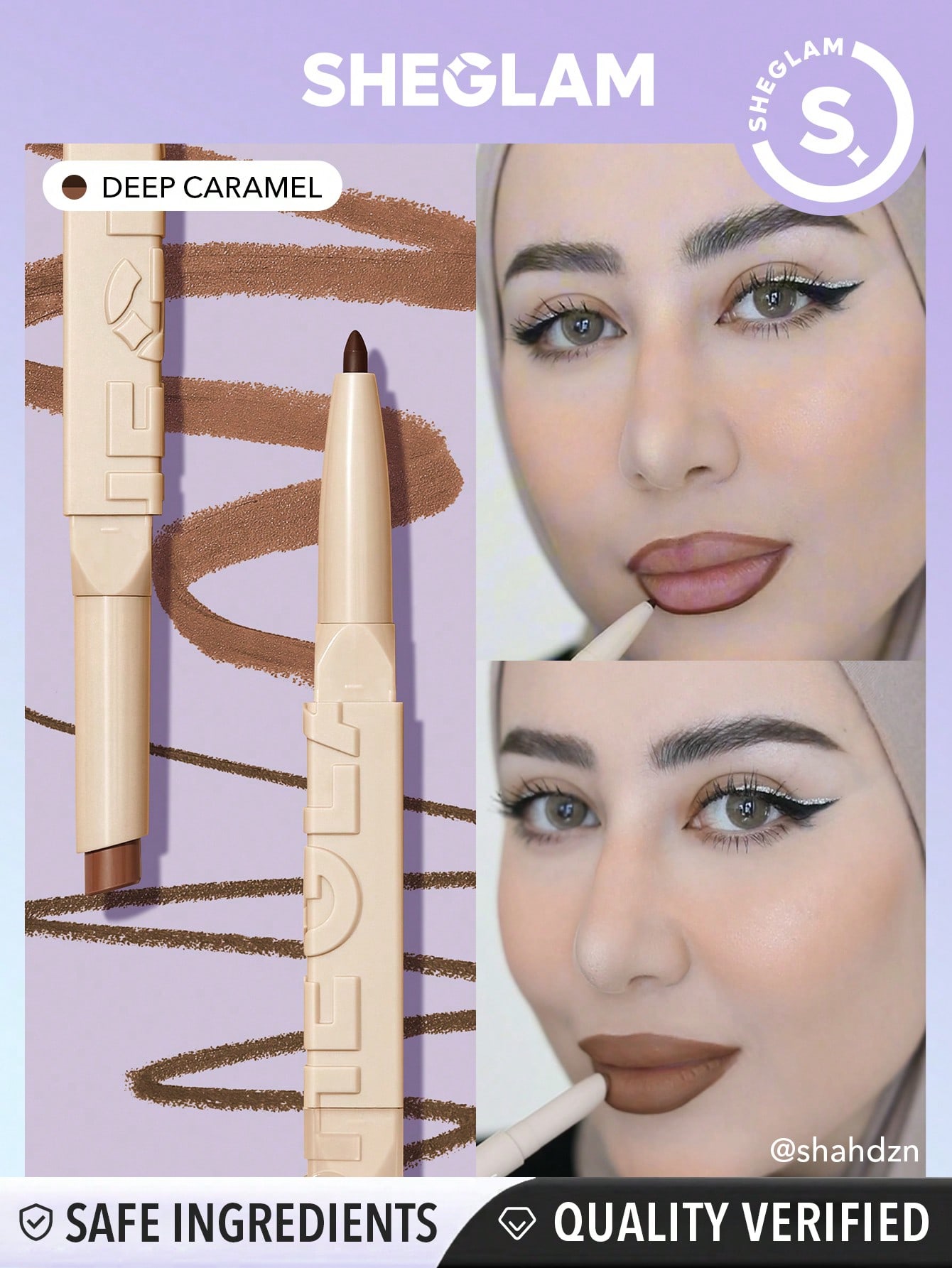 SHEGLAM أحمر شفاه Glam 101 و قلم تحديد الشفاه Duo-Deep Caramel 2-In-1 Matte Dual-Ended Lip Liner قلم