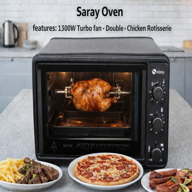 فرن كهربائي سراي سعة 36 لتر 1300 واط مع ترموستات قابل للتعديل 50–300 درجة، مؤقت 90 دقيقة، 3 وظائف تسخين علوي وسفلي، فرن منزلي للخبز والشوي والتحميص – موديل MNO 103