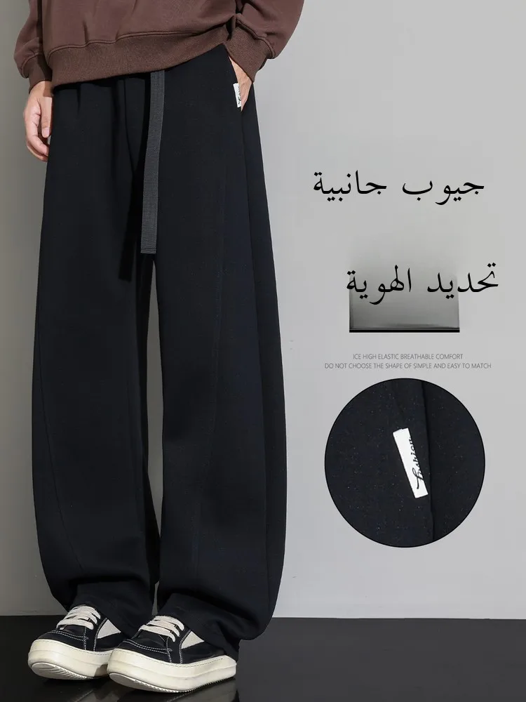 بنطلون رياضي كاجوال للرجال من جينزويست بلون واحد وتصميم راقي مستقيم وواسع الساق مع حبل للربط لفصلي الربيع والخريف