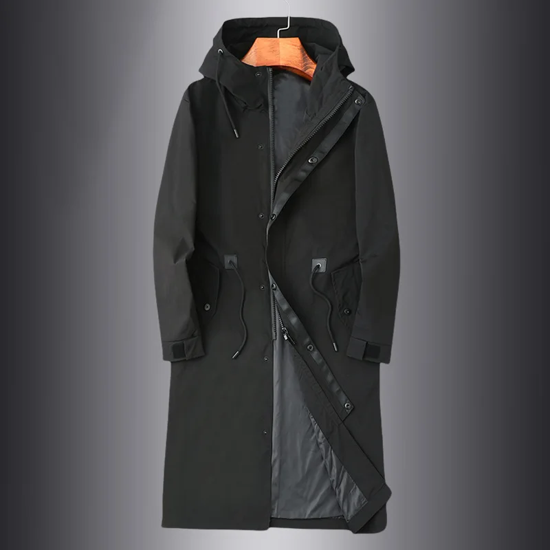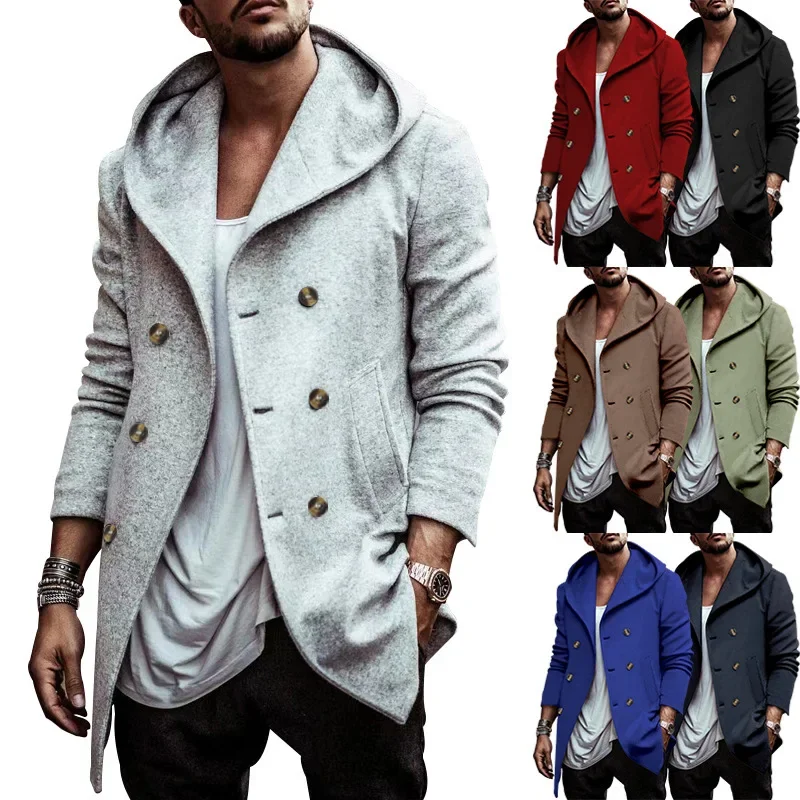 سترة واقية للرجال كاجوال طويلة بغطاء للرأس من القطن بياقة مزدوجة وأزرار للخريف بنمط جديد سترة واقية فضفاضة مناسبة