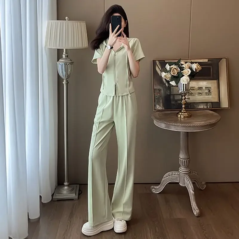 مجموعة ملابس رياضية كاجوال للسيدات صيف جديد موضة التخسيس تحويل العمر قبعة قصيرة الأكمام بنطال ذو قصة أرجل واسعة بدلة من قطعتين