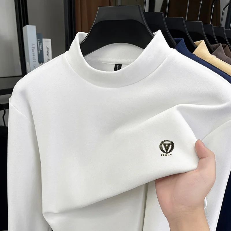 الراقية جودة الرجال شبه عالية الرقبة المخملية طويلة الأكمام تي شيرت الخريف الشتاء جديد طباعة الدافئة البلوز تنوعا العصرية الرجالية