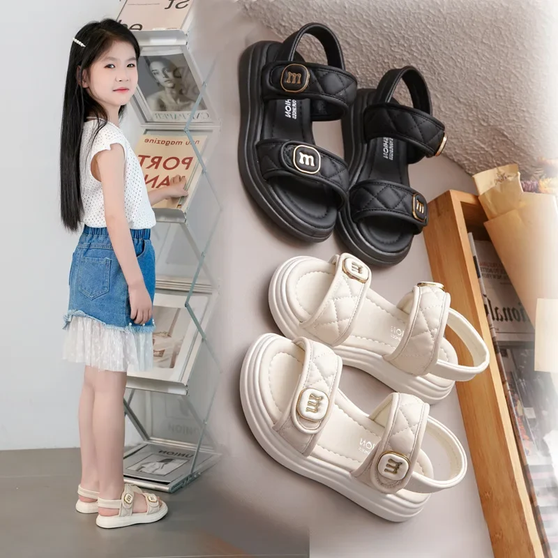 صنادل للأطفال مفتوحة من الأمام أحذية شاطئ ناعمة من الأسفل مضادة للانزلاق طراز جديد للفتيات الصغيرات النسخة الكورية شباشب رياضية
