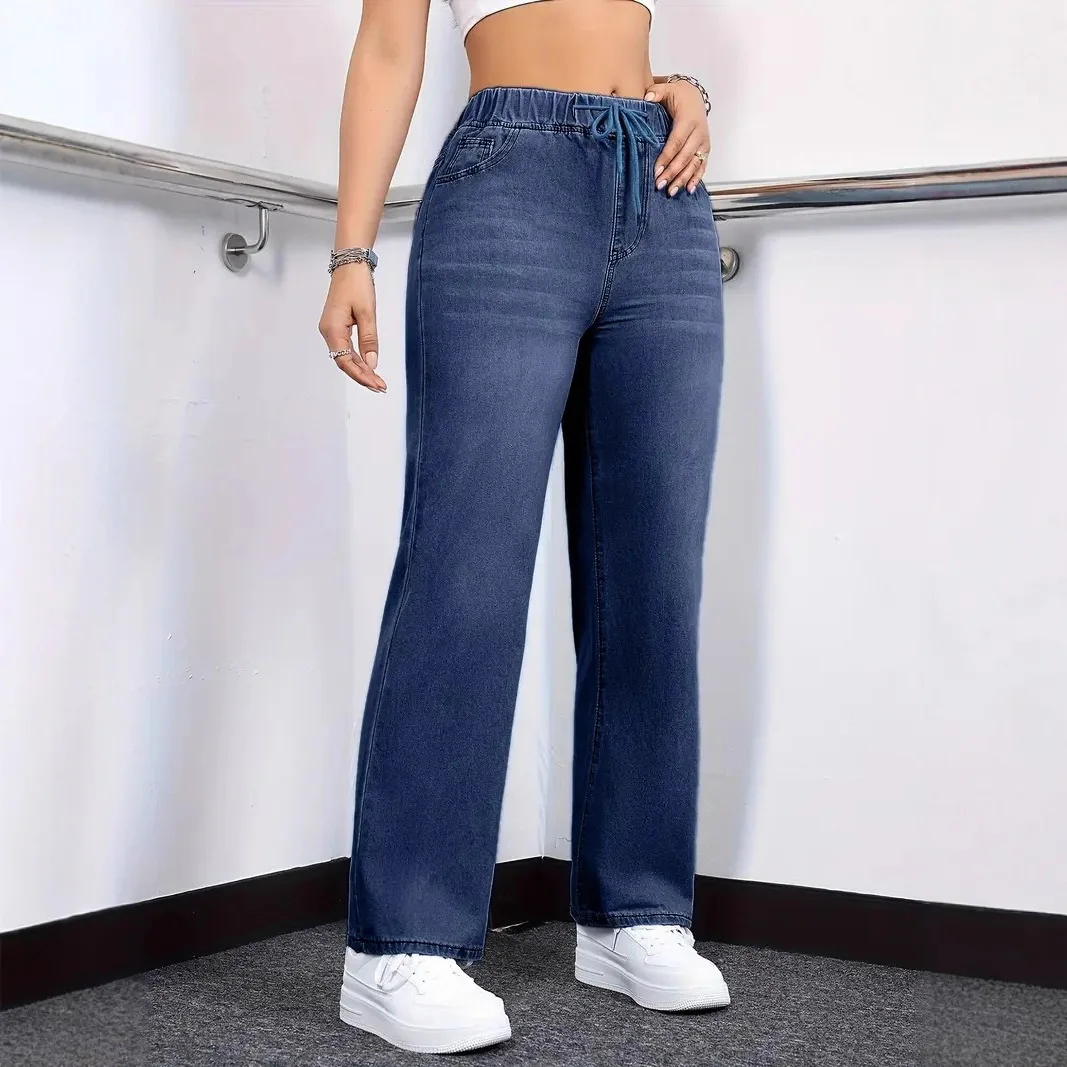نمط غير رسمي ارتفاع الخصر مستقيم الساق الدينيم الجينز المرأة نسيج مرن الرباط حزام مريح الترفيه الموضة