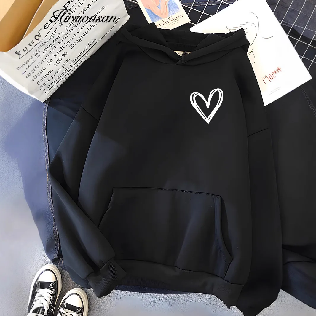 Hirsionsan بسيط القلب طباعة المرأة البلوز الحجم الأوروبي عبر الحدود طويلة الأكمام مقنعين البوليستر مزيج القطن البلوز