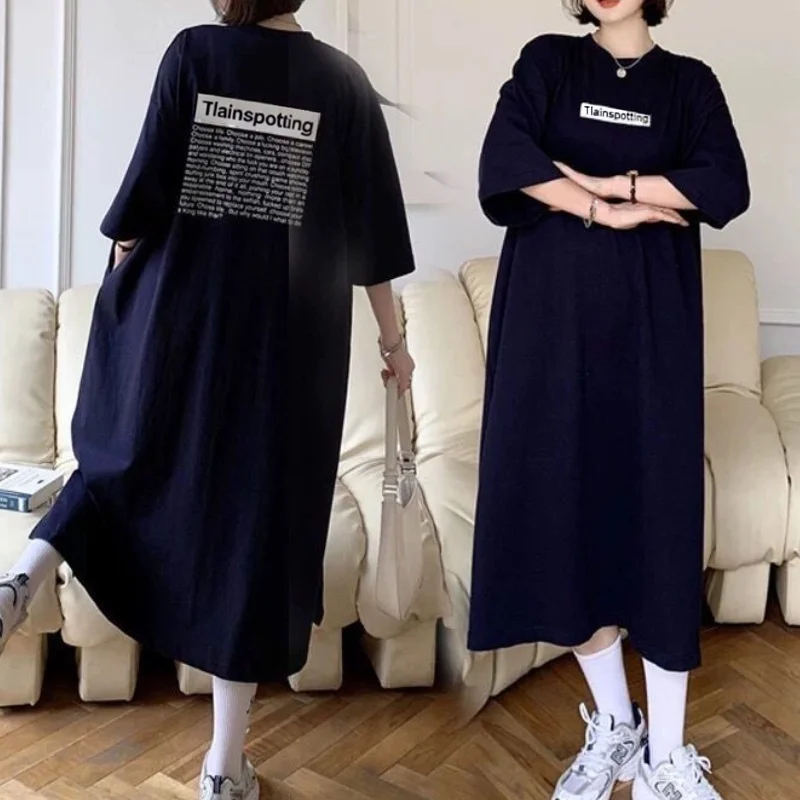 بلوزات فستان أنيق عتيق تي شيرت نسائي غير رسمي مقاس كبير فستان جديد في ملابس الشارع الكورية للسيدات تي شيرت نسائي كبير الحجم