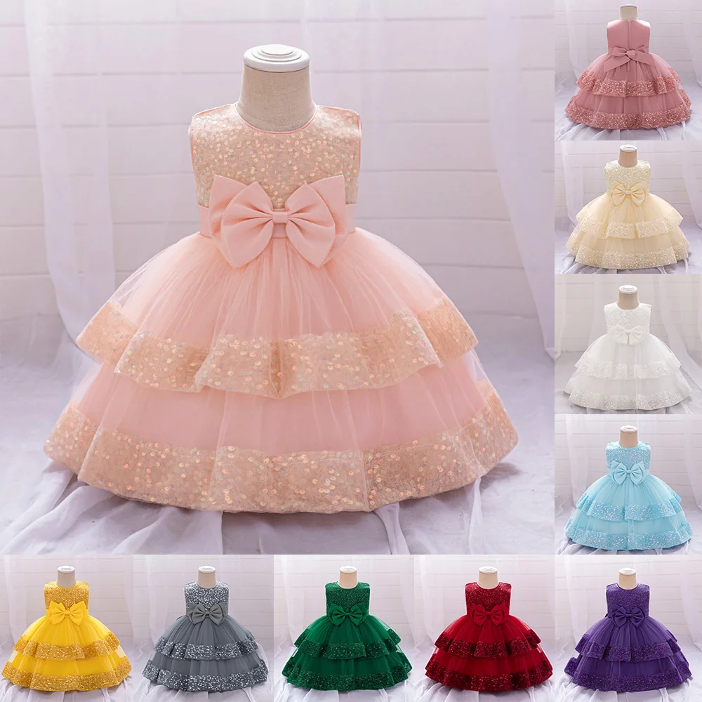 فستان أميرات بطبقات للفتيات الصغيرات ، فساتين حفلة عيد الميلاد الأول ، ثوب حفلة رسمي ، موضة الطفل الصغير ، أزياء السهرة بالترتر ، جديد