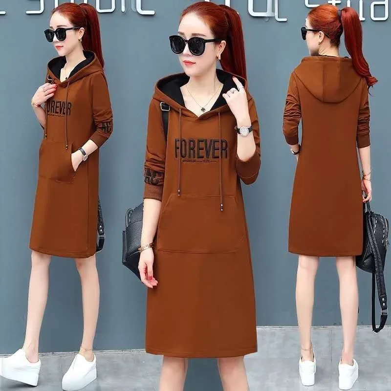 فستان ميدي بغطاء للرأس وأكمام طويلة من الصوف السميك مقاس كبير على الطراز الكوري للخريف والشتاء فستان نسائي أنيق غير رسمي