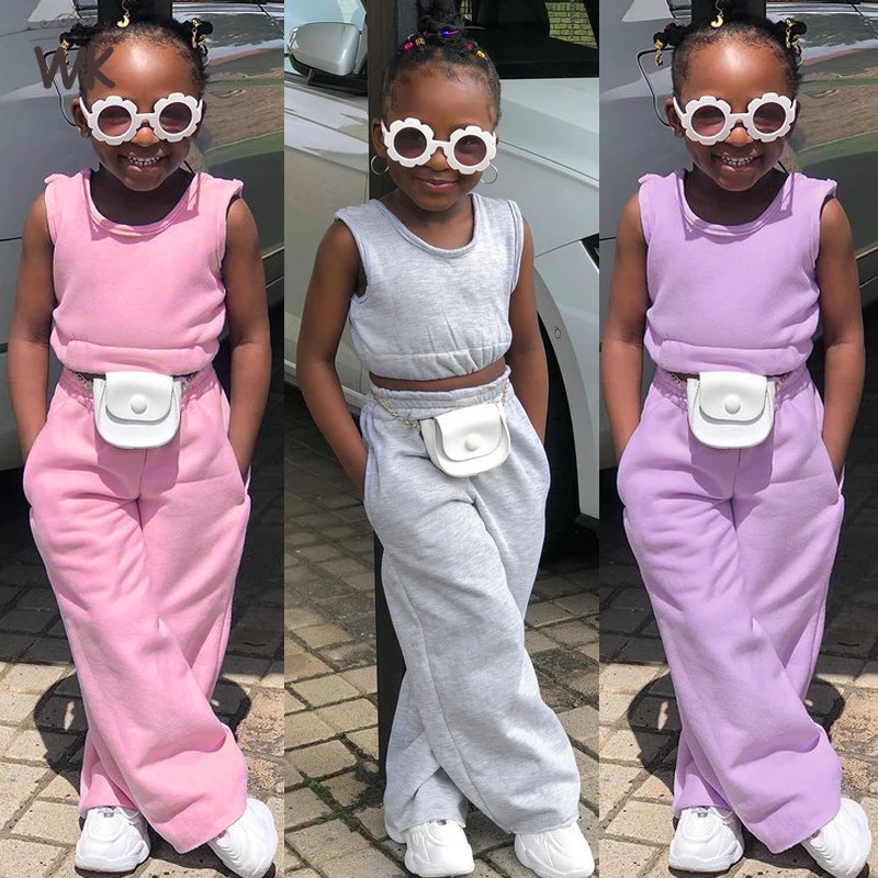 1-10Y الاطفال فتاة الملابس مجموعات ملابس الأطفال الصلبة القطن أكمام قمة الموضة + بنطلون تنحيف الصيف طفل وتتسابق الدعاوى