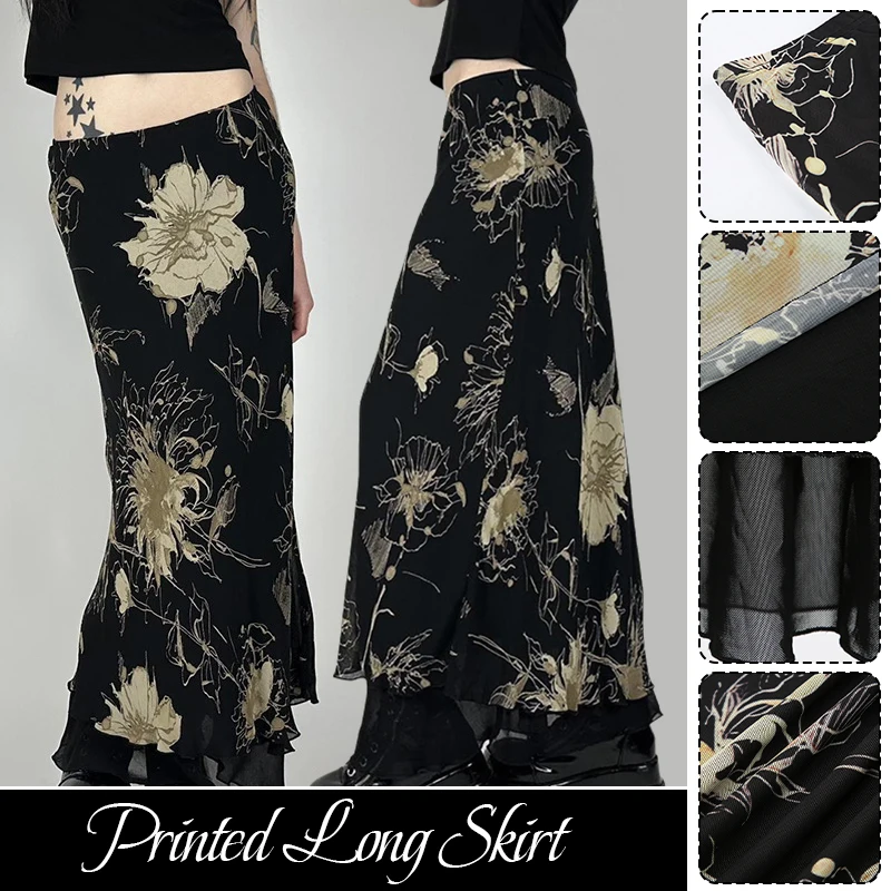 موضة الأزهار الأسود جماليات طبقة مزدوجة شبكة تنورة طويلة منخفضة الخصر الورك تنورة الصيف ضئيلة ألف خط التنانير الشارع الشهير القوطية Y2K