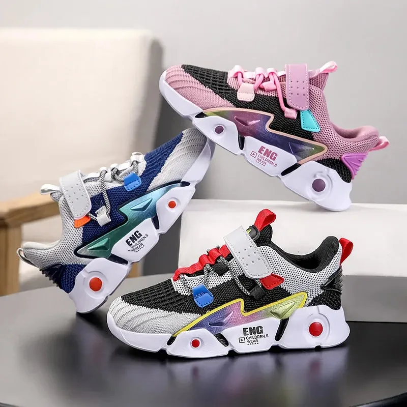 أحذية ركض شبكية قابلة للتنفس ومقاومة للاهتراء لربيع وخريف نمط جديد للأطفال المتوسطة والكبيرة أحذية رياضية ذات سطح شبكي