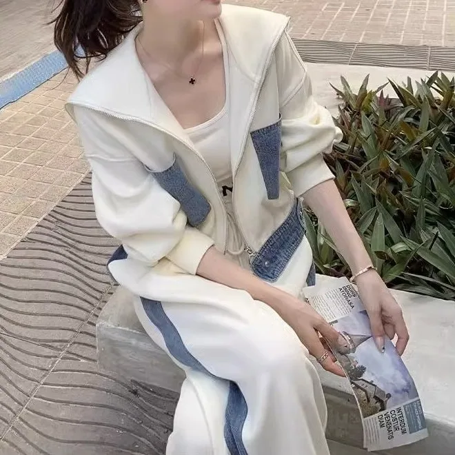 أطقم بذلة رياضية للركض من قطعتين للنساء ، معطف قصير فضفاض ، بنطال واسع الساق ، بدلة رياضية نسائية ، جاكيت غير رسمي ، موضة كورية