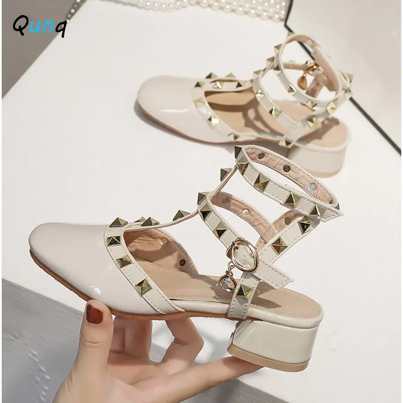 Qunq 2023 صيف جديد بنات جميل الروماني صندل برشام تنفس عالية الكعب الأميرة أحذية عرض الموضة غير رسمية أحذية الأطفال
