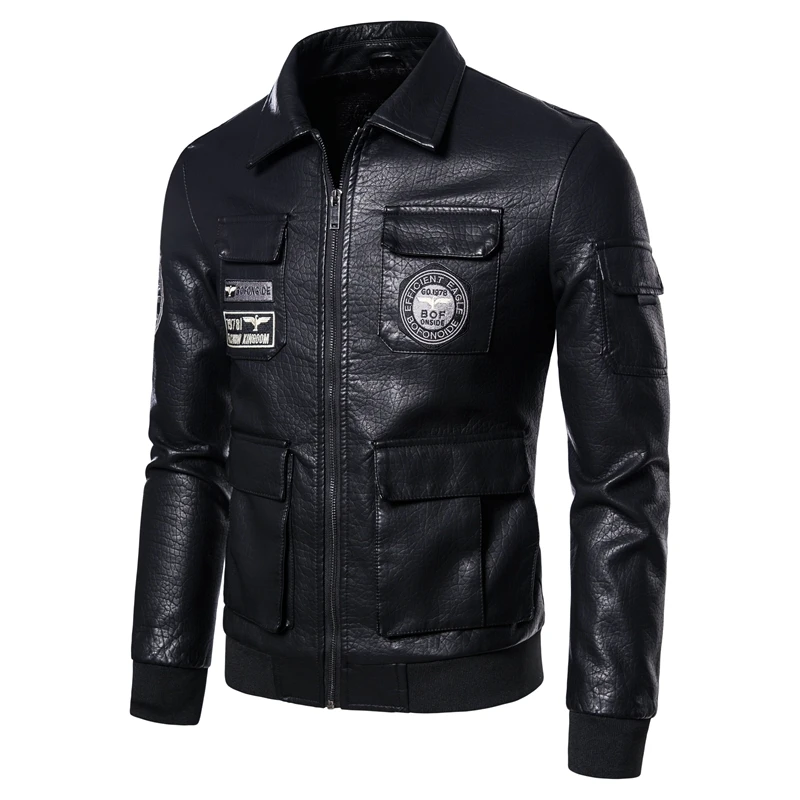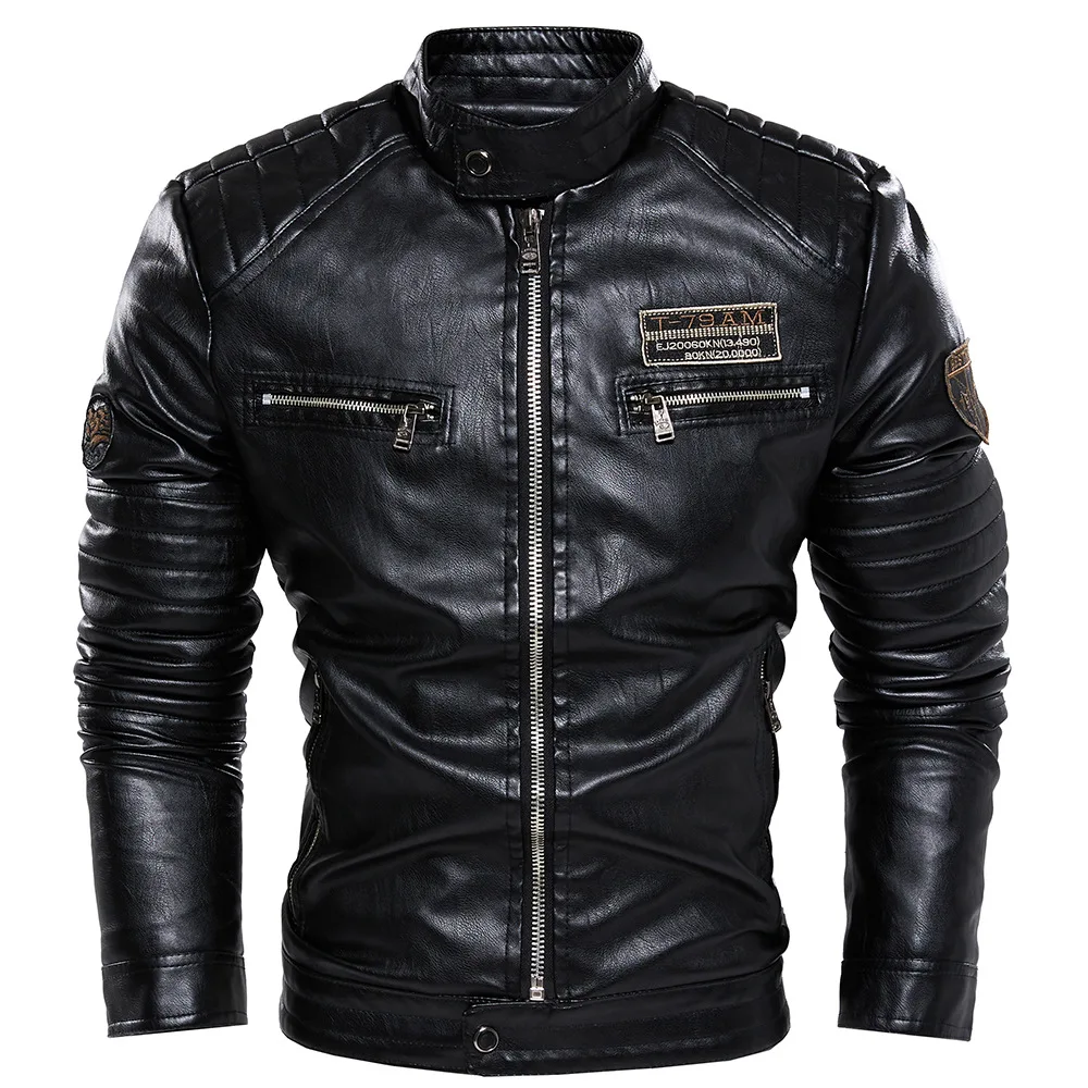 سترة دراجة نارية جلدية مطرزة للرجال ، سترة طيار ، النسخة الكورية ، الخريف ، الشتاء ، جديد ،