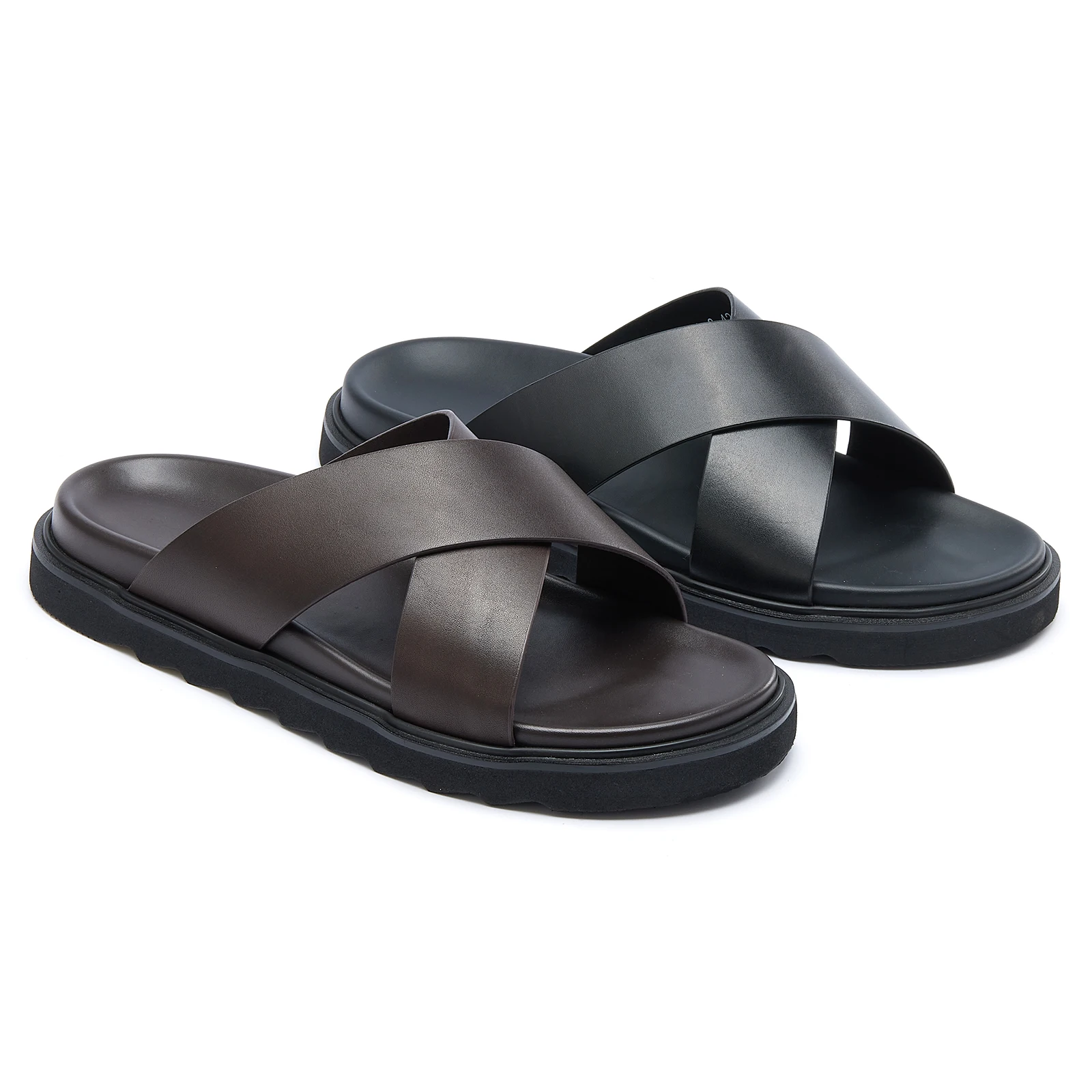 جديد أنيق الرجال الجلود النقية عدم الانزلاق النعال أعلى درجة جلد البقر الرقعة لينة مريحة للتنفس رجل الصنادل اليومية الأحذية