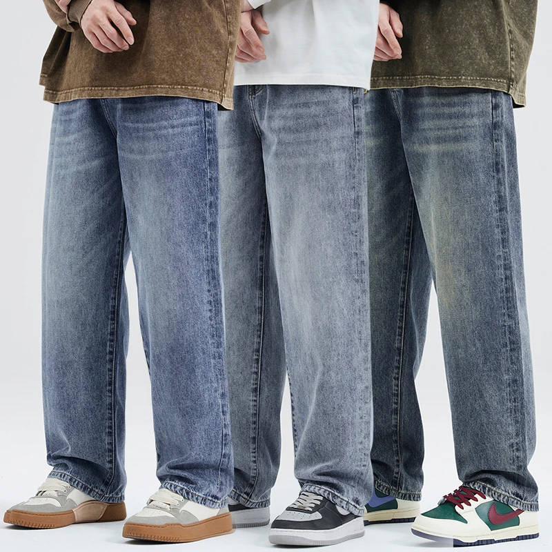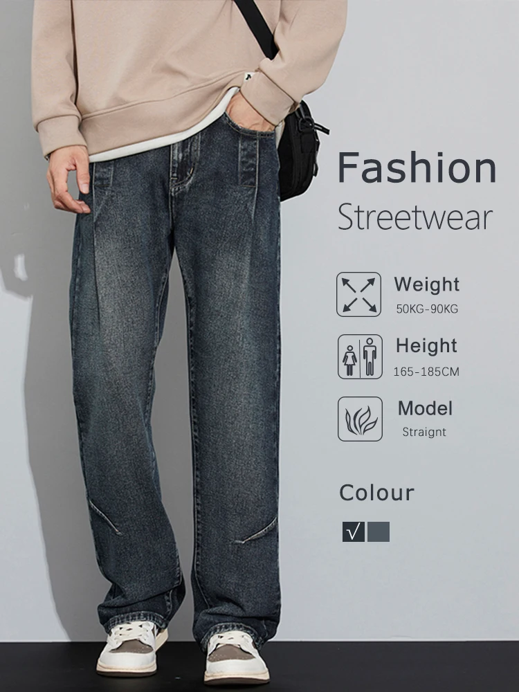 جينز كوري عتيق للرجال لخريف جديد ملابس خروج شخصية غير رسمية مستقيمة ملابس رجالية واسعة من قماش الدنيم