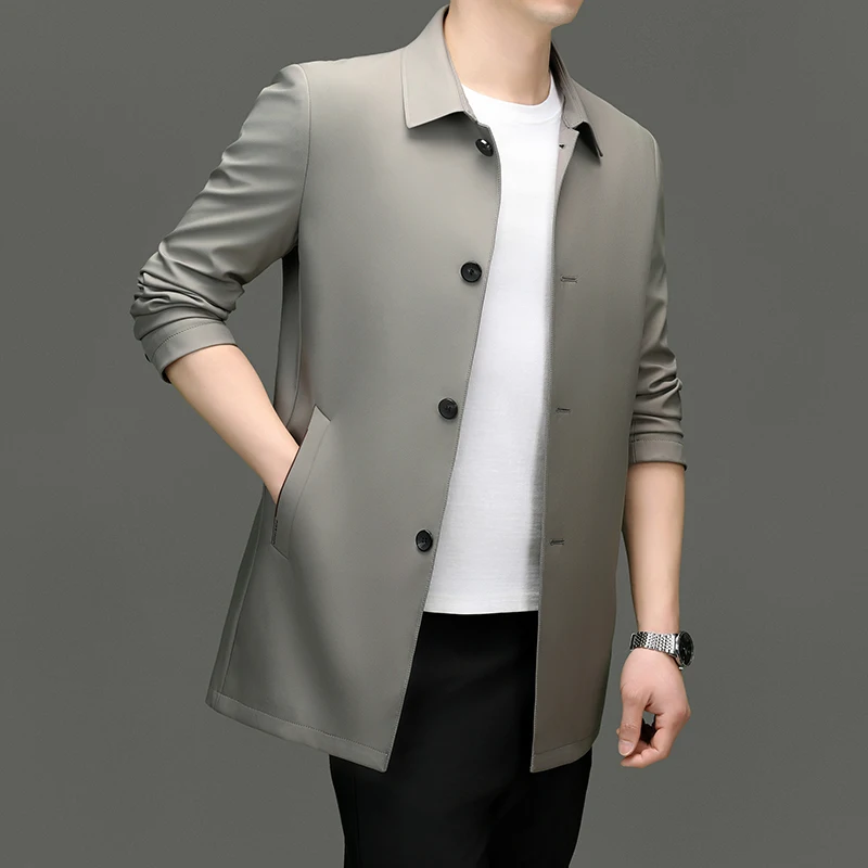 2025 الرجال خندق معطف طويل موضة وسيم مع بلون الراقية النسيج التلبيب الأعمال معطف غير رسمي الشباب السترات